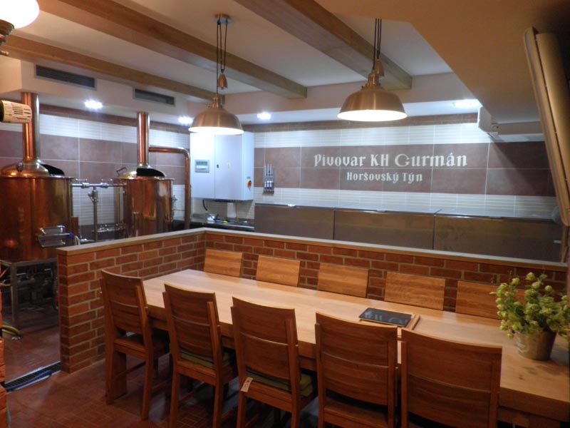 v roce 1406 město Horšovský Týn dostalo od arcibiskupa Zbyňka Zajíce z Hazmburka mnoho privilegií, jejichž součástí se stalo i právo várečné. Jsme rádi, že tuto tradici vaření piva v Horšovském Týně můžeme opět obnovit a oznamujeme Vám, že ve sklepních prostorách našeho hotelu Gurmán jsme otevřeli v červenci 2014 minipivovar KH Gurmán, kde pivo vaříme dle původních receptur a necháváme je poctivě zrát, tak jako zrálo tenkrát, bez konzervantů a filtrace.